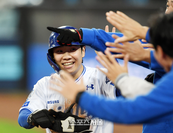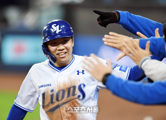 [포토]빠른 발로 추가 득점한 삼성 김지찬