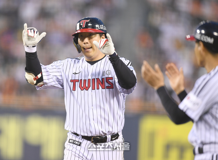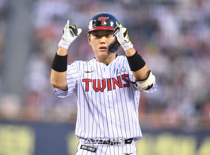 [포토] 신민재, 5회 득점기회 만드는 내야안타