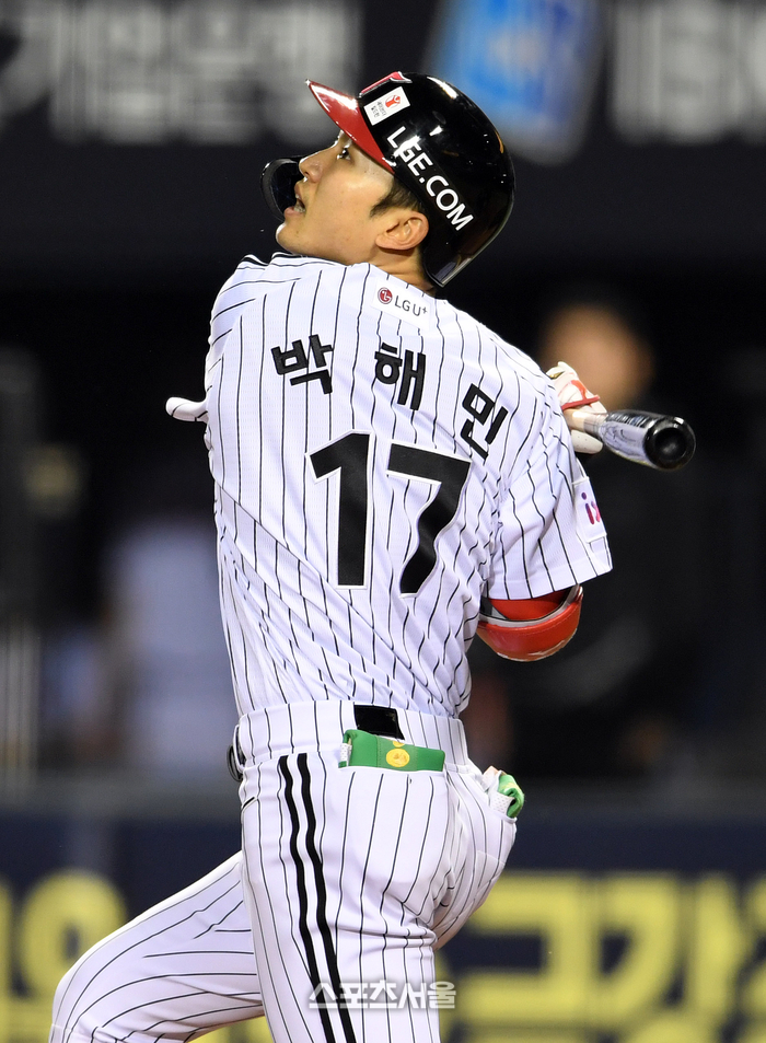 [포토]한화 폰세 상대 솔로 홈런 넘긴 LG 이영빈
