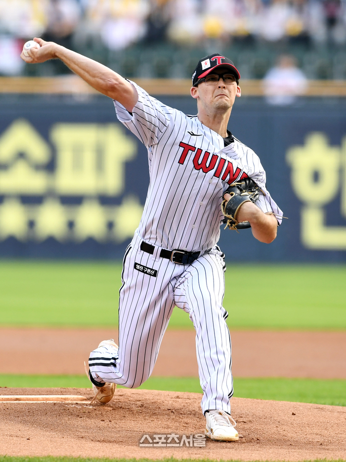 [포토]고별 마운드에 오른 LG 선발 코엔 윈