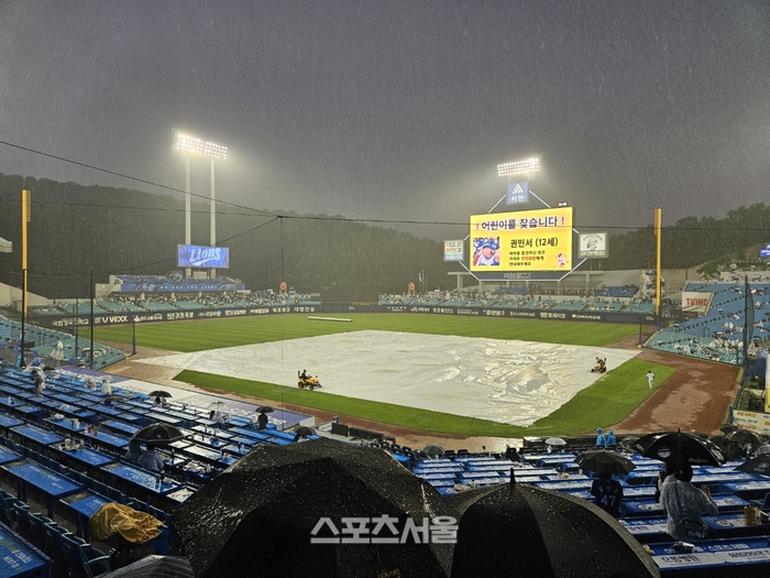 ‘갑자기 쏟아진 폭우’ 롯데-삼성전, 경기 시작 5분 만에 중단→끝내 우천 취소 [SS대구in]