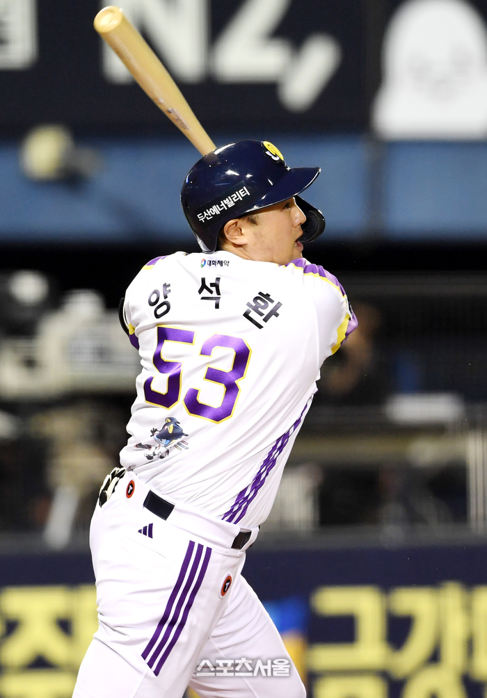 [포토]내야 안타로 동점 만드는 두산 양석환