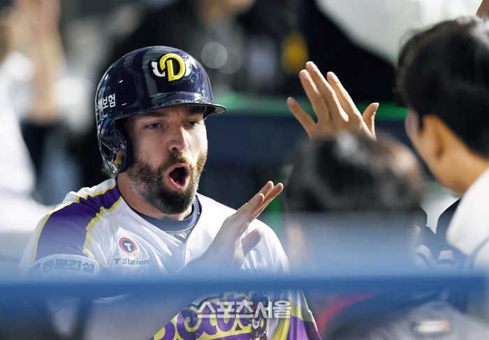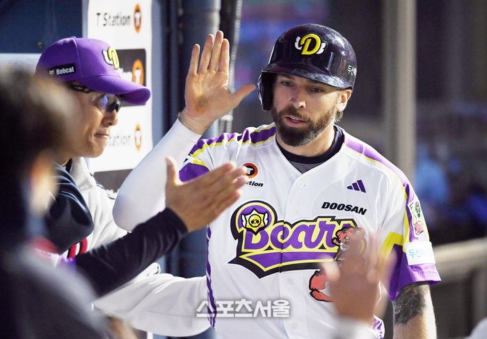 [포토]나란히 득점 올리는 두산 양석환-김재환