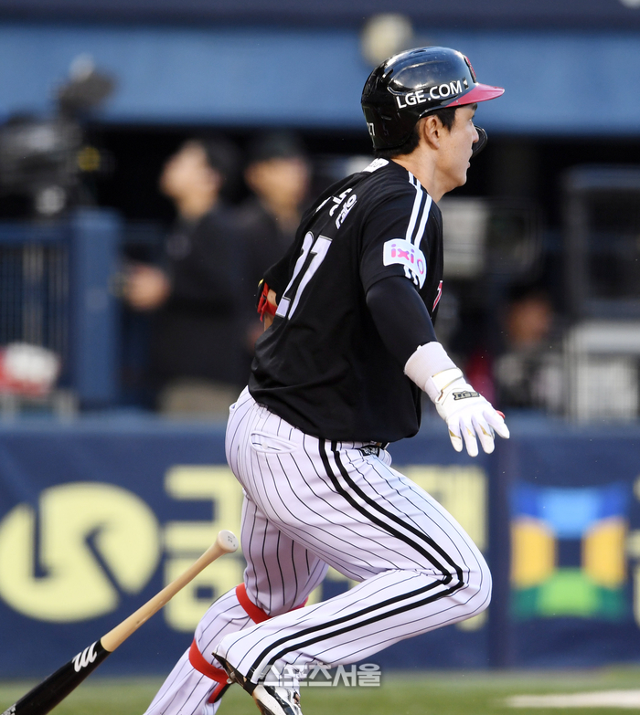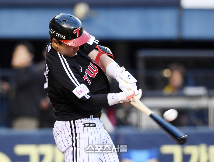 [포토]LG 박동원, 두산 잭로그 상대 선제 적시타