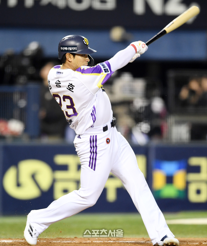 [포토]1타점 2루타 치는 두산 강승호