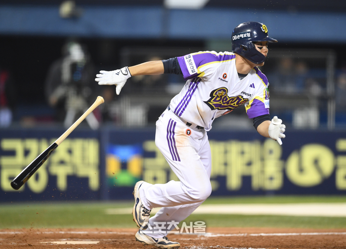 [포토]두산 오명진, LG 최채흥 상대 내야안타