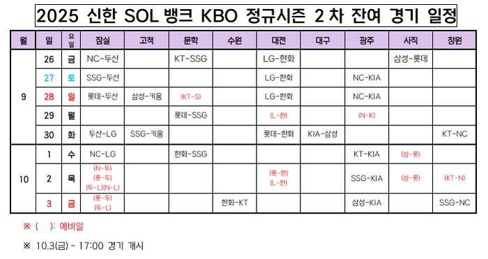 [공식] KBO 잔여 경기 떴다! 오는 10월3일 정규시즌 ‘마감’