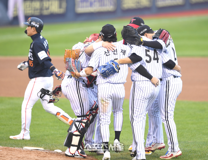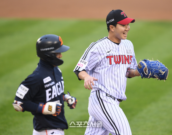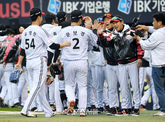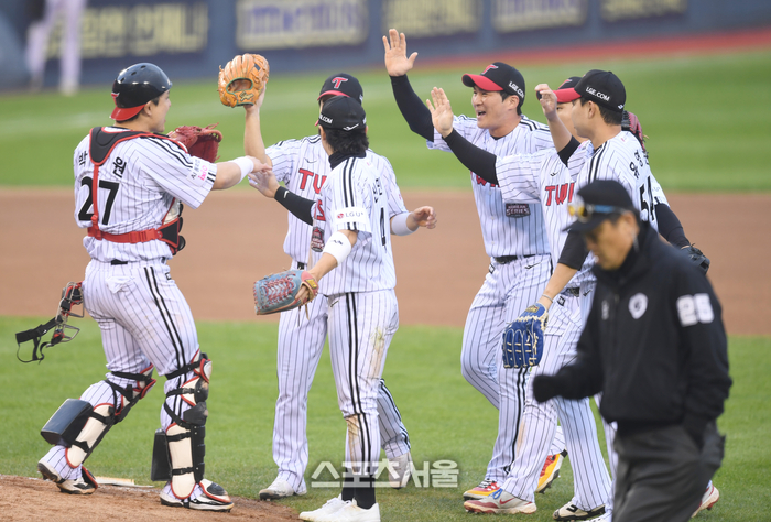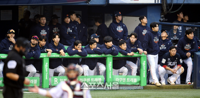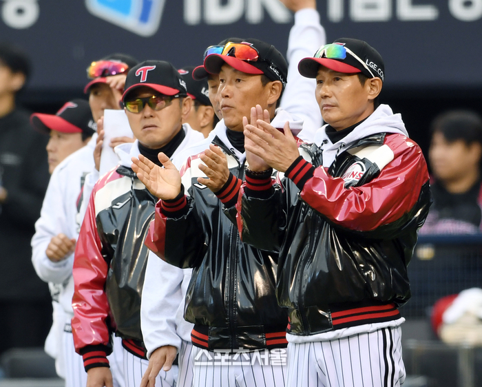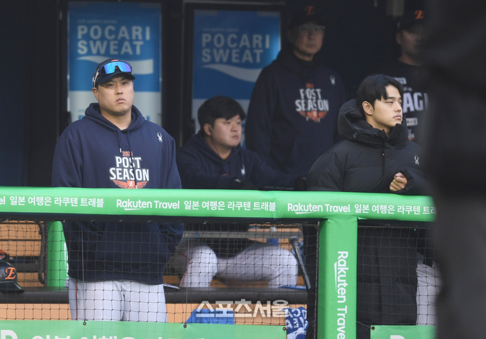 LG 김현수가 26일 서울 잠실구장에서 열린 2025 KBO 포스트시즌 한국시리즈 1차전 한화와 경기 1회말 1사2,3루 내야땅볼을 치고 있다.
