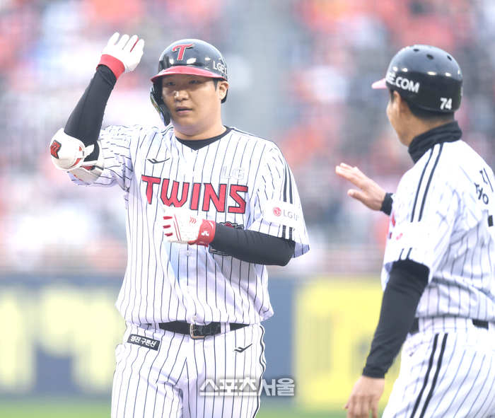 한화 선수들이 26일 잠실구장에서 열린 2025 KBO리그 LG와의 한국시리즈 1차전에서 2-8로 패한 뒤 팬들에게 인사를 하고 있다. 2025. 10. 26.