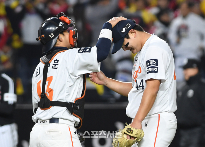 한화 팬들이 29일 대전 한화생명볼파크에서 열린 2025 KBO 포스트시즌 한국시리즈 3차전 LG와 경기 2회말 1사1루 하주석 좌전안타 때 환호하고 있다.