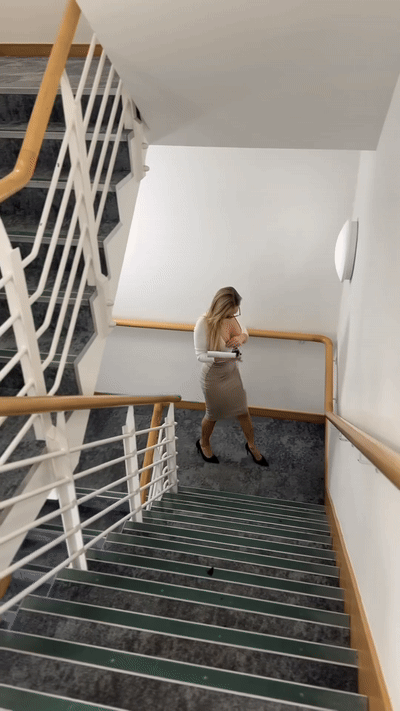 오피스룩 계단 올라오는 노브라 서양 처자 가슴골